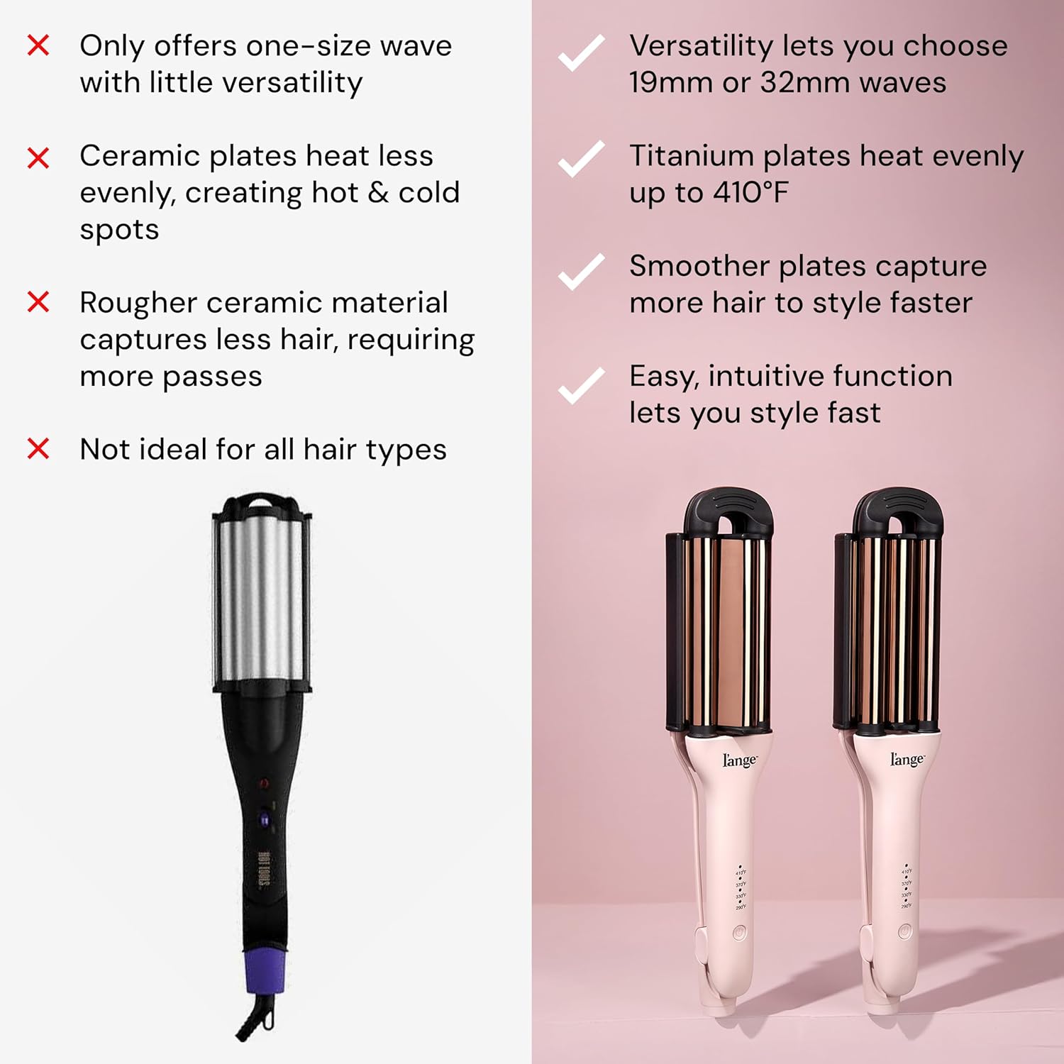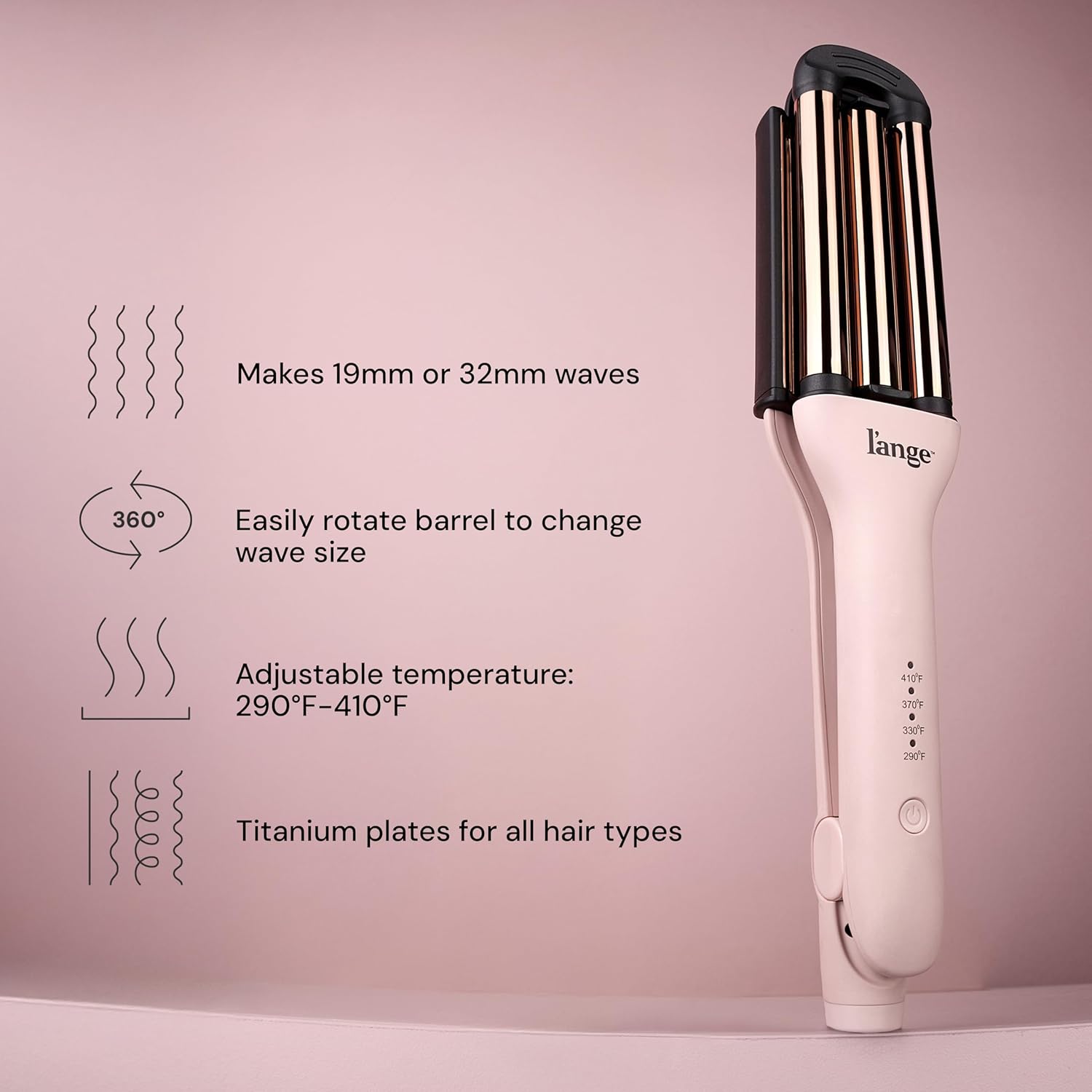 L’ANGE Hair VersaWaver Adjustable Titanium Waver (Blush) – One Tool, Two Wave Styles